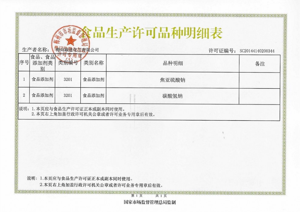 食品生產(chǎn)許可證—明細表