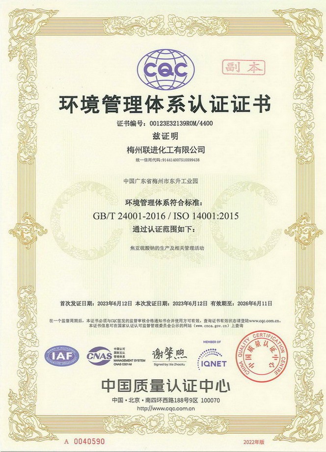 ISO14001體系證書—中文